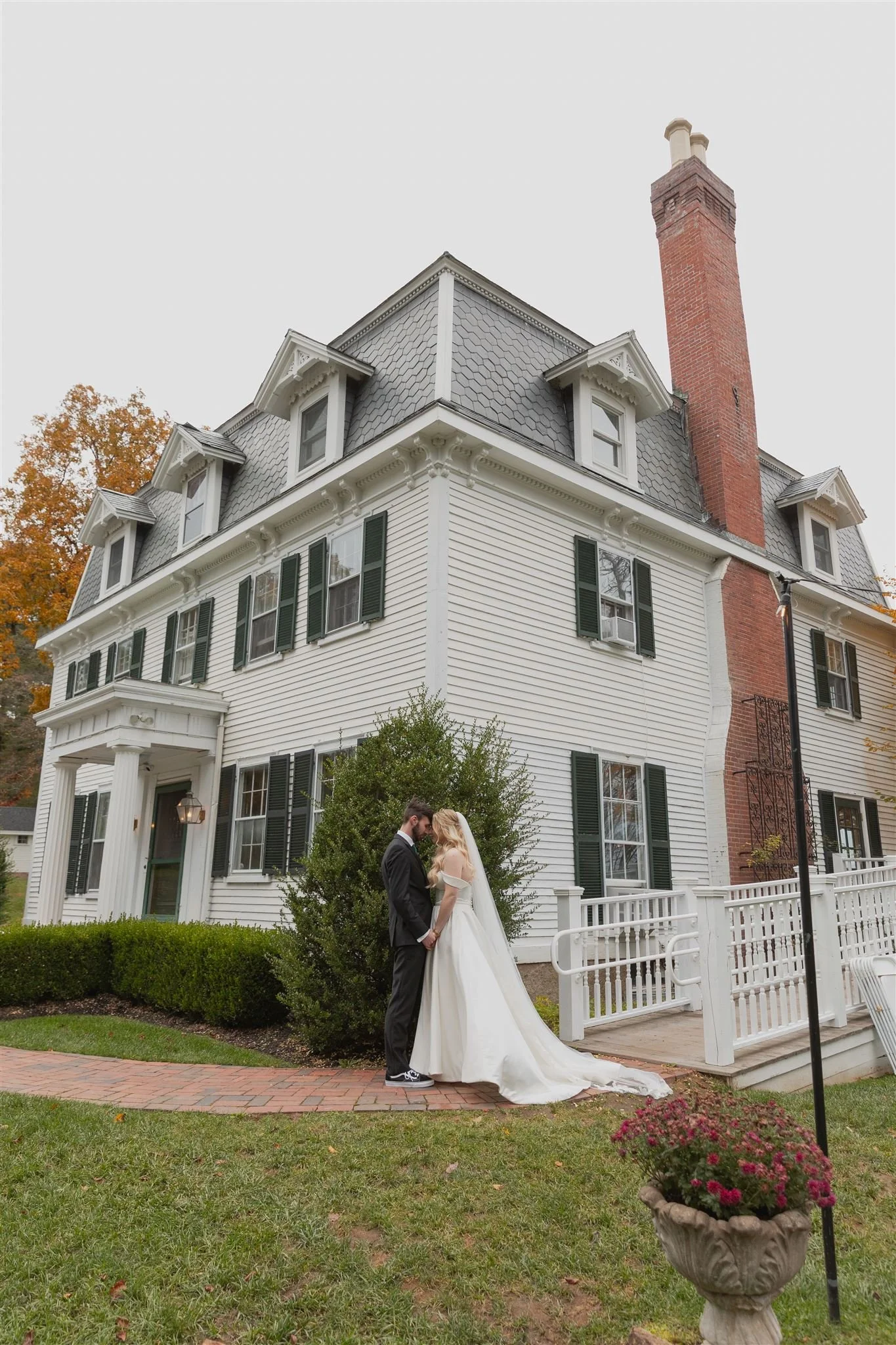 The Evermore at Peirce Farm wedding venue is focused around the historic Victorian style mansion in the center of the grounds. This well kept gem has a very refined and elegant feeling to it. The entire mansion is decorated with antique furniture. The venue also offers a modern New England Barn on the property for the hosting of the reception! And the entire outside grounds are surrounded with beautifully kept landscaping.